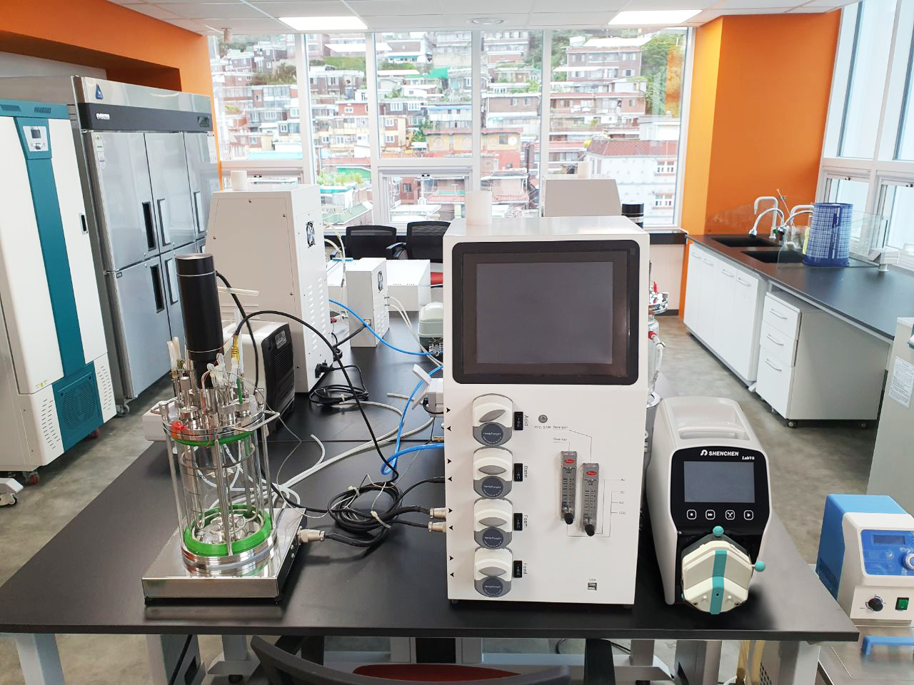 Peristaltic pump used in laboratory for cell fluid transferring, chemistry dispensing, liquid chromatography.